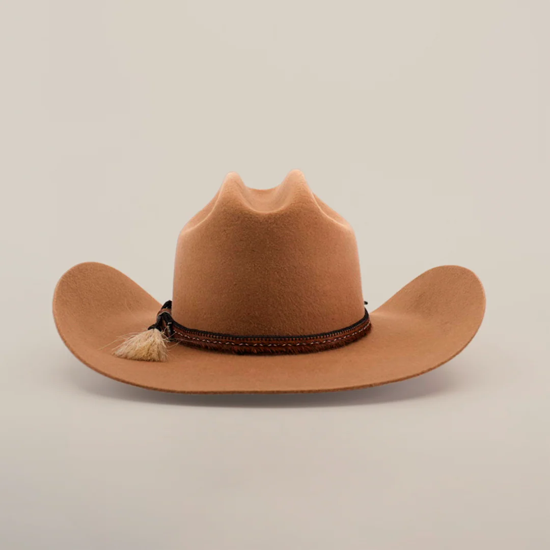This exceptional 6X Doble S felt hat represents the finest craftsmanship in Western headwear. Meticulously crafted from premium sheep's wool, this hat features a luxurious leather band and elegant accents. Its superior quality and attention to detail make it a distinguished choice for the discerning cowboy.