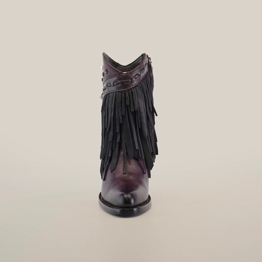 The Austin Fringe Bootie in rich Wine color showcases masterful craftsmanship from our elite bootmakers. Part of our prestigious Platinum Collection, this J-toe boot features premium leather meticulously hand-selected for its superior quality. Women consistently praise its sophisticated design, with its perfectly placed fringe details and luxurious leather sole. Each pair reflects generations of artisanal expertise, making it a coveted statement piece that combines timeless elegance with modern appeal.