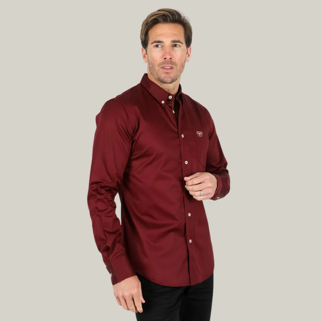 Men’s Single Pocket Logo Modern Fit Stretch Dress Shirt - Burgundy - CTL9260