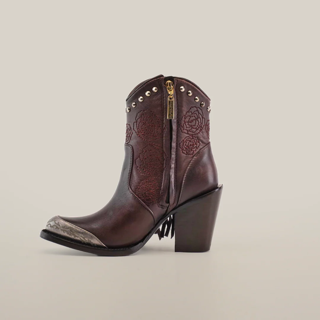 The Dallas Fringe Bootie in Chocolate, featuring the elegant J toe, represents pure luxury handcrafted by master bootmakers. This stunning design from our exclusive Platinum Collection showcases premium leather with delicate fringe details that capture attention. Women consistently praise its perfect blend of sophistication and style. With its leather sole and meticulous attention to detail, this boot delivers unmatched comfort and elegance. A masterpiece that combines traditional craftsmanship with contemporary fashion, making