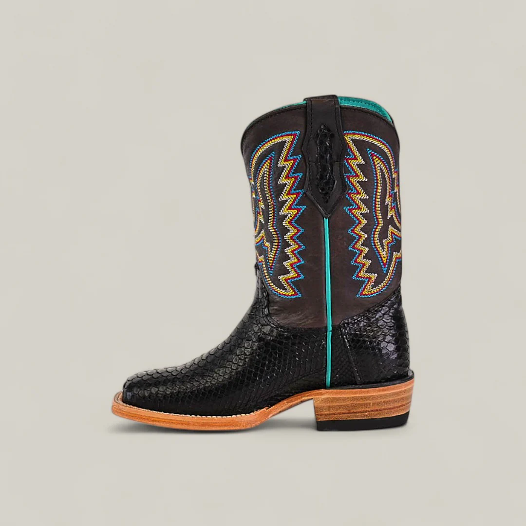 Exotic Python Black - Square Toe - Kids Boots