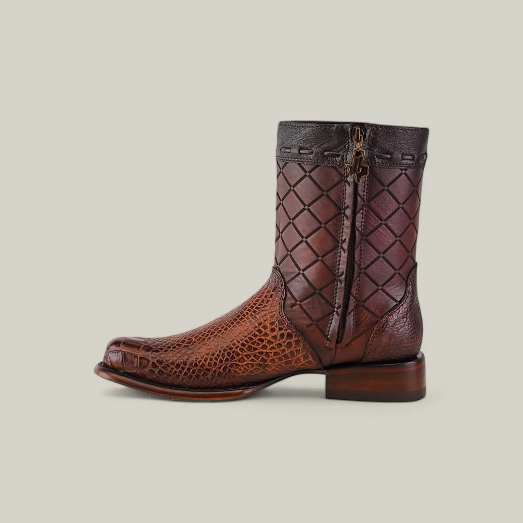 Step into luxury with our Exotic American Alligator boots in elegant Fawn. The round toe design delivers timeless sophistication while the premium alligator leather showcases nature's most stunning patterns. Each scale tells a story of unmatched craftsmanship and refined style. A masterpiece for the distinguished gentleman.