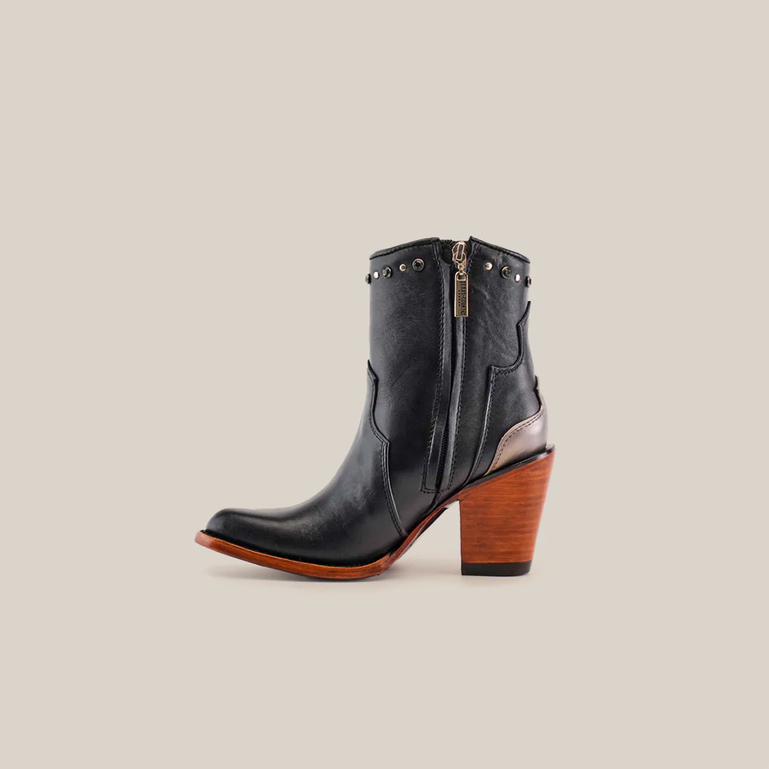 The Milan Chains Bootie Black J toe represents luxury craftsmanship at its finest. Hand-made by master bootmakers, this stunning design from our exclusive Platinum Collection showcases premium leather with elegant chain details. Women consistently praise its perfect blend of sophistication and edge, making it a coveted statement piece. The leather sole and meticulous attention to detail reflect unparalleled quality. Each pair embodies timeless elegance while delivering exceptional comfort - a true masterpiece that captures the essence of luxury footwear.